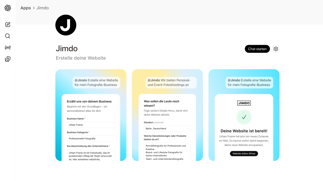 Die Jimdo App ist ab sofort im ChatGPT App-Verzeichnis verfügbar