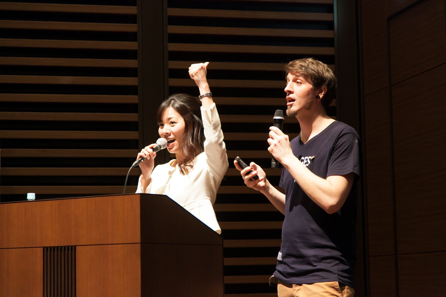 Jimdo Best Pages の新たな取り組みとして、来場者約400名が選ぶ賞「Jimdo Audience Selection」を設けました。プログラムのなかで、スマートフォンを振っていっせいに投票します。Jimdoドイツから来日したJimdoJapan 担当のクリストフがいっしょに会場を盛り上げてくれました。