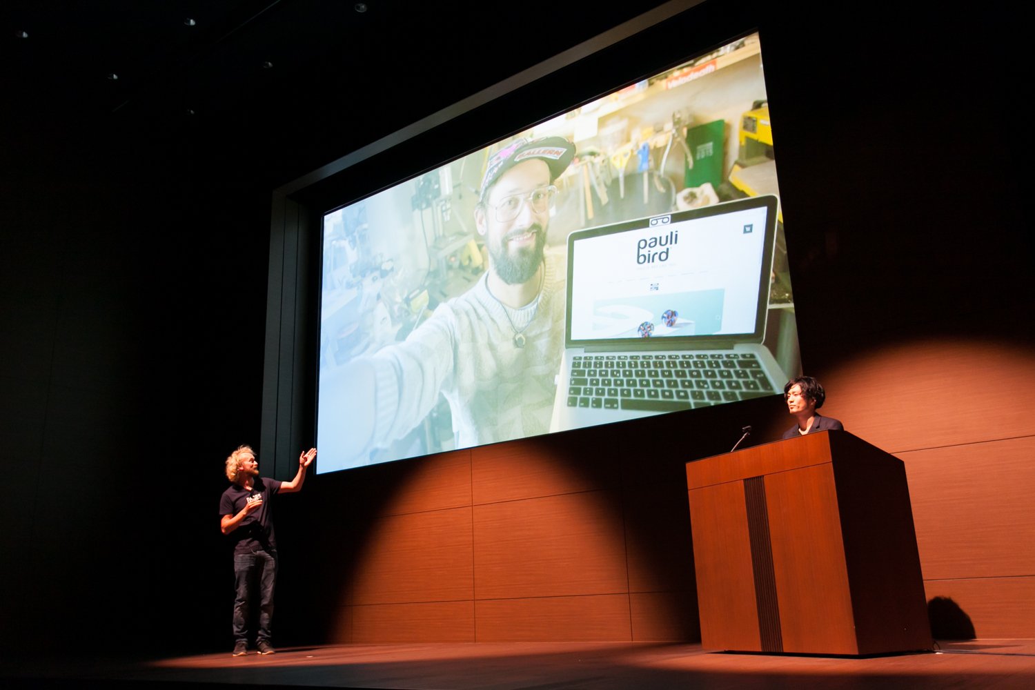 まずは創業者のセッションからスタート。Jimdoの創業者は3人いますが、今回はそのうちのひとり、フライデルこと Fridtjof Detzner(フリジオフ・デツナー)が来日しました。創業よりプロダクトとデザインを総括してきたフライデルからは、Jimdoの創業時代の話に加え、自身が好きなユーザーの紹介も。