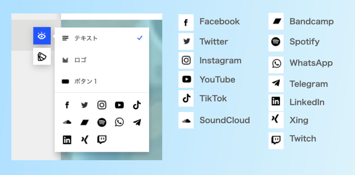 AIビルダーで掲示できるSNSアイコンが、13種類に増えました。