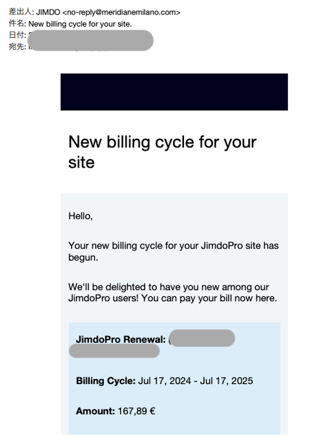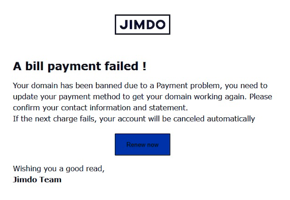 ▼ジンドゥー(Jimdo)を装った不審なメール例