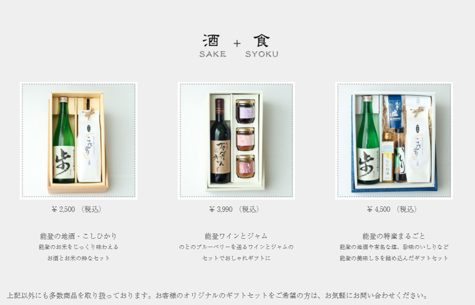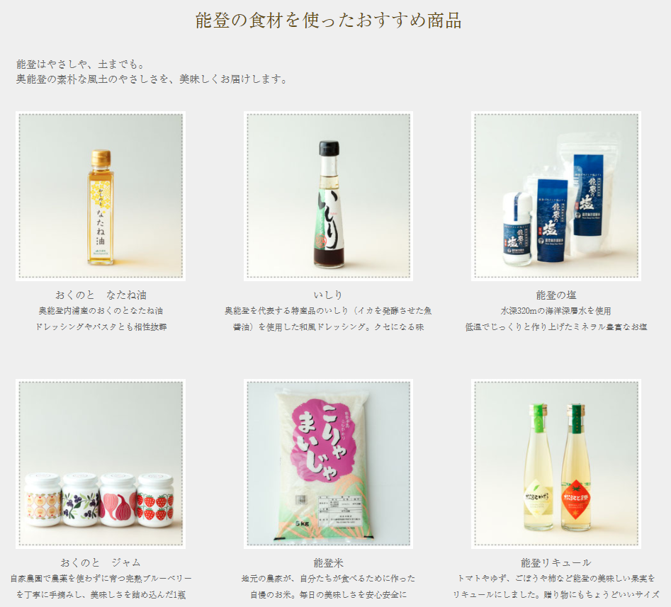 ほんまオリジナル商品とともに、「多くの能登の商品を知ってもらいたい」という思いでホームページを作成しております。オンラインショップもぜひご覧ください。