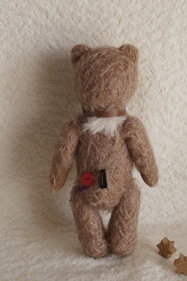 素材:アンゴラヤギで出来たモヘア生地の身体、化繊綿の中身、ガラス製のグラスアイ