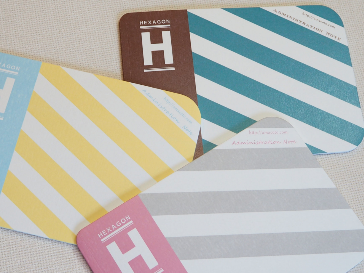 表紙はFSC森林認証紙のディープラフを使い、東欧雑貨のようなラフな仕上になっています。カラフルでおしゃれなストライプ柄は全部で5色です。どんなカラーが届くかはお楽しみに。