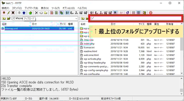 作成XMLファイルを、FTPソフトを使ってサーバーのルートディレクトリ(最上階層のフォルダのこと)にアップロードします。