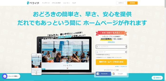 ペライチは、株式会社ペライチが提供するホームぺージ作成ツールです。現在は25万人以上の登録ユーザーがおり、通販機能のあるランディングページや、店舗の紹介ページ、イベント等の告知など、さまざまな用途で活用されています。