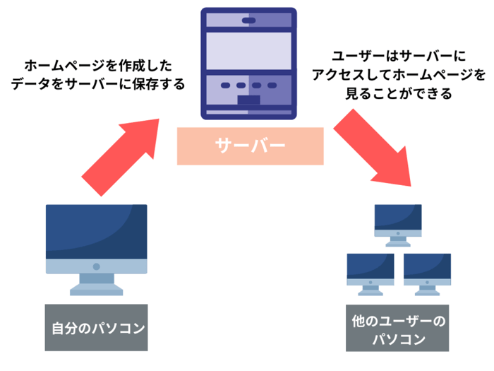 ユーザーがサーバーにアクセスすることで、保存されているHTMLや画像のデータを利用できるという仕組みです。
