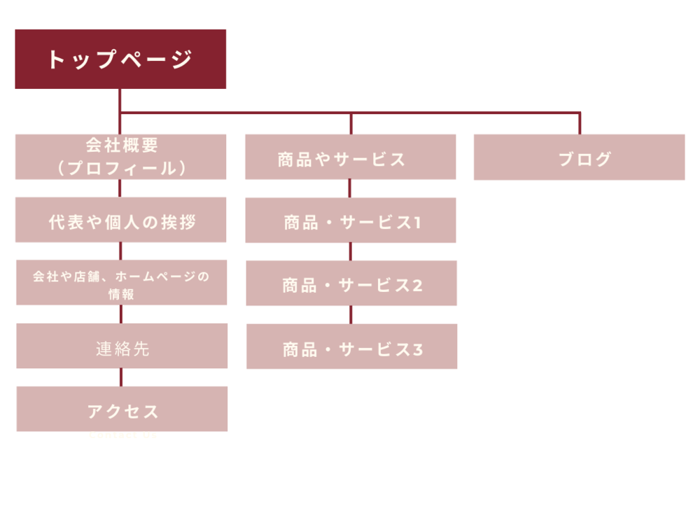 ホームページはトップページを頂点に、商品やサービスの紹介や会社概要など、複数のページにより構成されています。