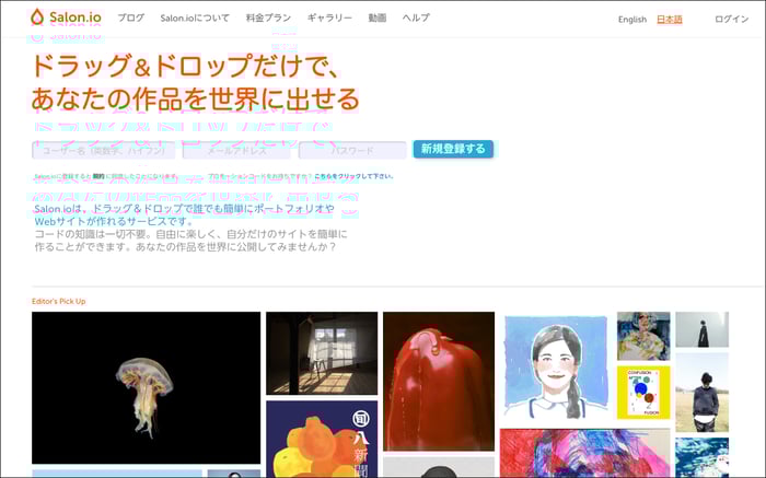 『salon.io』は、ドラッグ&ドロップで簡単にポートフォリオサイトが作れるサービスです。