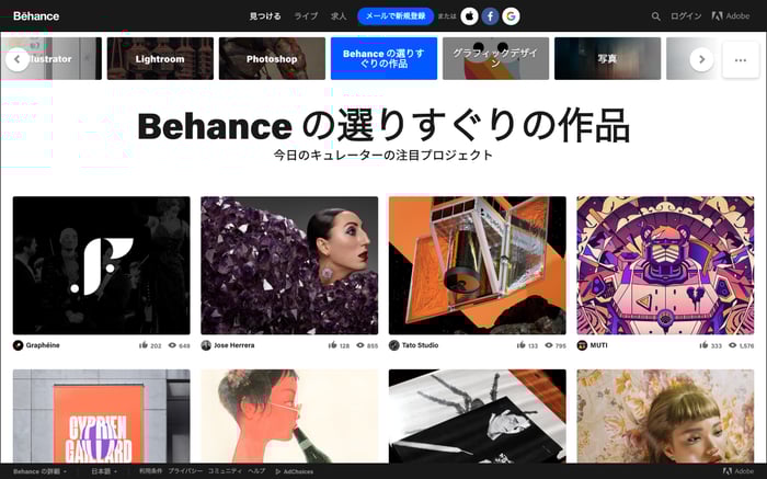 『Behance』は、Adobeが運営するクリエイター向けのSNSです。デザイナー、イラストレーター、フォトグラファー、CGアーティストなど、世界中のクリエイターから数百万以上の作品が公開されています。