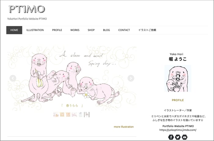 まずご紹介したいのが、イラストレーター堀ようこさんのポートフォリオサイトです。まさにポートフォリオ自体が作品になっている、お手本のようなポートフォリオです。