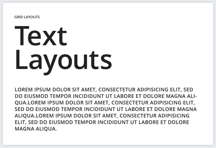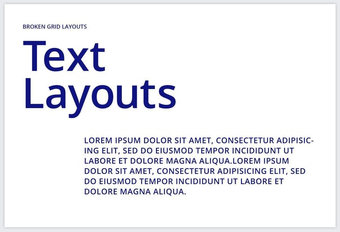 タイトルと本文を同じガイドに配置するのではなく、ずらして配置することでテキストレイアウトにリズムが生まれ、タイトルがより際立ちます。本文のテキストボックスは、グリッドにしたがって配置してください。