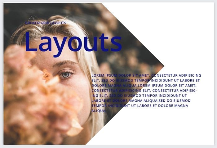 グリッドレイアウトに沿ってデザインしていくことの重要性は、こちらの記事でお伝えした通りです。基本はグリッドに忠実にオブジェクト(テキスト、背景、写真など)をレイアウトしていくのが一般的ですが、それがすべてだと一見単調に見えてしまう現象が起こりえます。