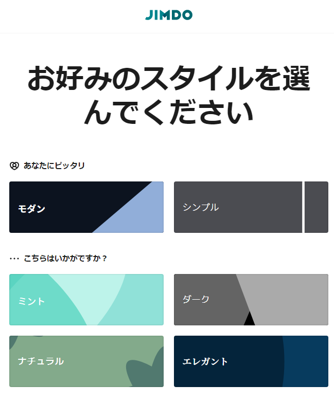-モダン/シンプル/ミント/ダーク/ナチュラル/エレガント などから1つ選択