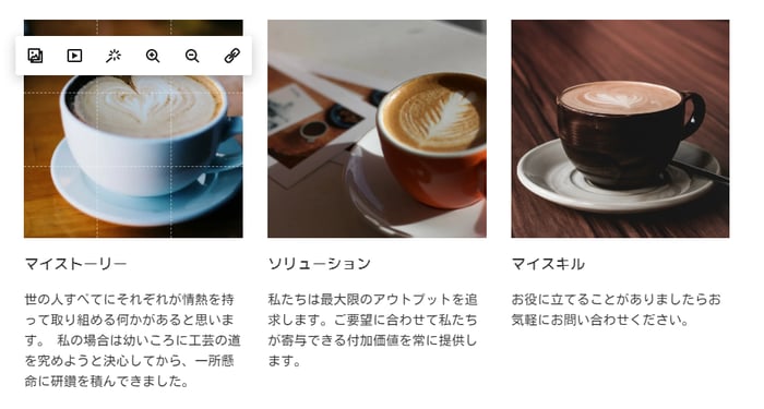 写真を変更する際も、画像部分をクリックして、任意のイメージを挿入すればOKです。