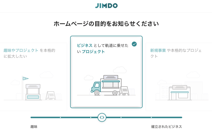 ジンドゥー(Jimdo)なら、仮のホームページが3つのステップで最短10分以内で作成できます。まず最初にアカウントを作成し、その後に表示される質問に答えていくだけです。