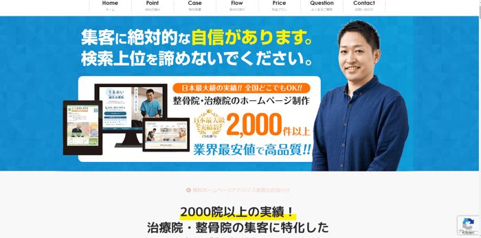 その豊富な経験を活かし、とにかく集客できるサイトを目指してサイト制作を進めています。 公式サイト内には、利用者の声や実際に手掛けた治療院のホームページ事例なども掲載しており、参考になります。