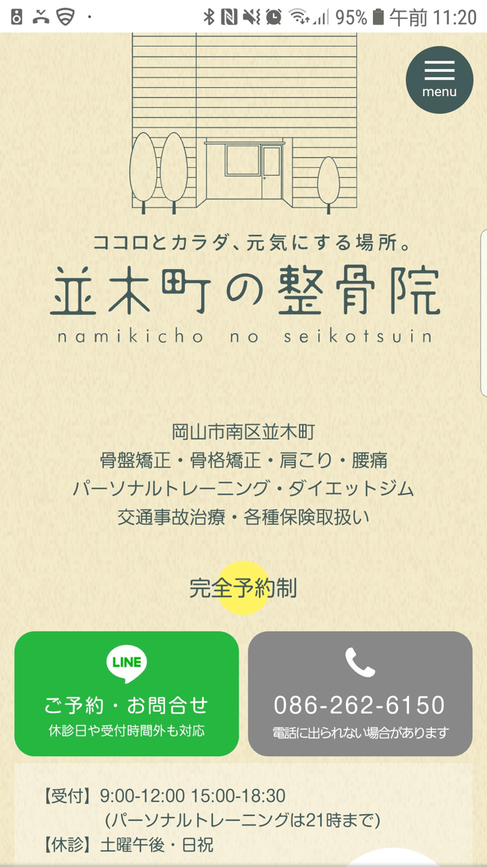 【きれいな写真が印象的な並木町の整骨院のホームページ例】