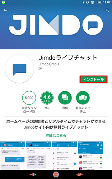 いまご自分で使用中のJimdoのホームページ側での設定はとくに必要ありません。現在アプリはAndroid版のみの対応となります。スマホやタブレットから、Google Playストアにいって、Jimdoライブチャットと検索してください。またはこちらのリンクがダウンロード先になります。