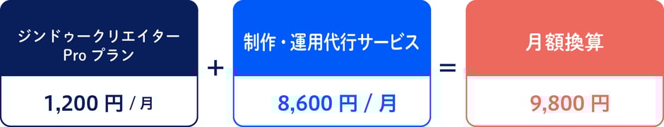 ジンドゥー Pro プラン 14,400円(年払)をお使いの場合、運用・代行サービス 8,600円/月払い
