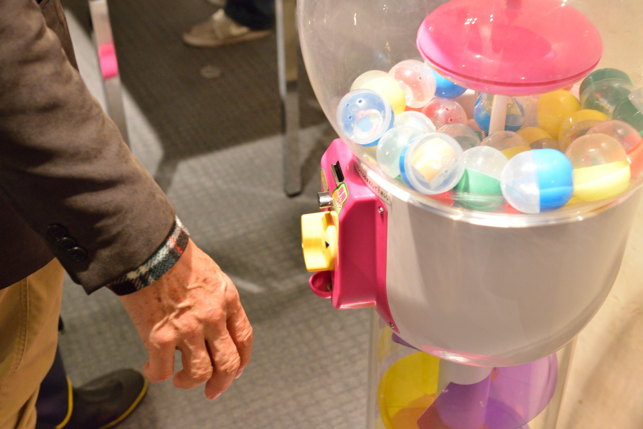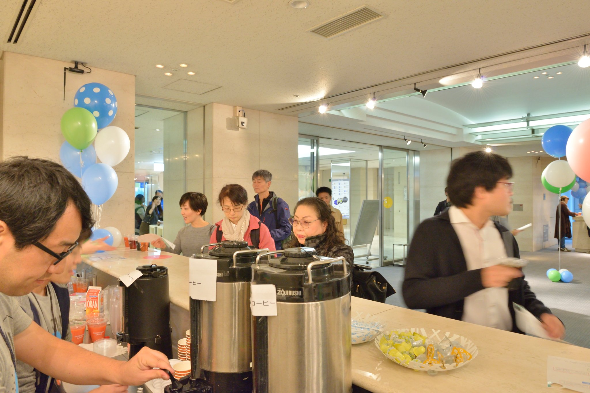 また、Jimdoガチャなるガチャガチャをまわすと、Jimdo Tシャツや書籍があたるコーナーも。みなさん楽しそうにレバーをまわしてらっしゃいました。さらに、地味なアップグレード(笑)ということで、ドリンクの種類も昨年より4種類まで増やして対応させていただきました。