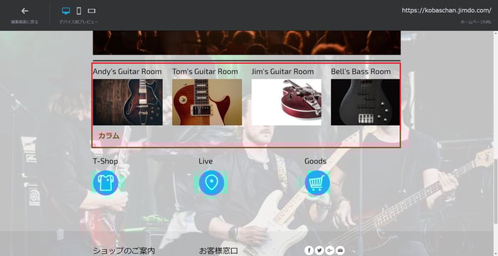 Jimdoにはコンテンツをブロックごとに配置できる「カラム」という機能があります。レスポンシブを意識したページ制作では、パソコンとスマホでこのカラムがそれぞれどのように表示されているかをチェックしておきます。