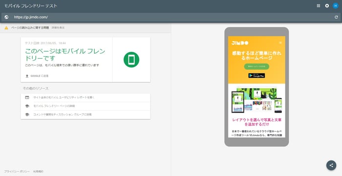 試しに日本のJimdoオフィシャルサイトをテストしてみました。
