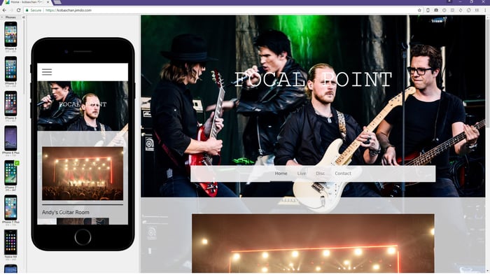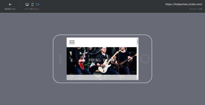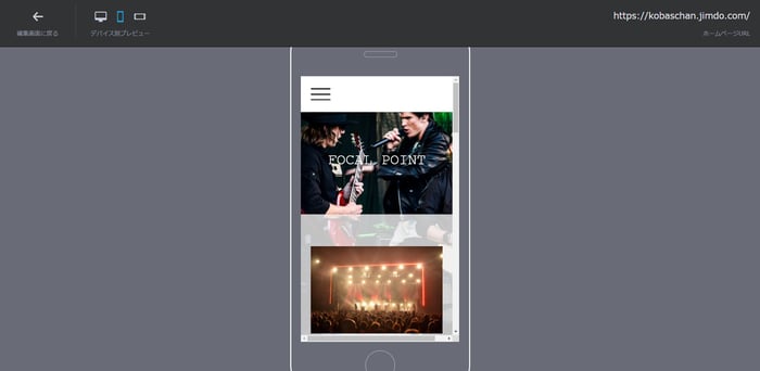 Jimdoにはそんなレスポンシブという技術が標準で備わっています。パソコンとスマホのブラウザでの見え方の違いに気をつけながら制作するのは変わりありませんが、Jimdoにはデバイス別のプレビュー機能やフォーカルポイントのような、まさにレスポンシブでの表示を細かく調整できる機能があります。これらをうまく活用すれば、どの端末で見ても製作者の意図したとおりに再現される最先端のホームページ制作が可能になります。