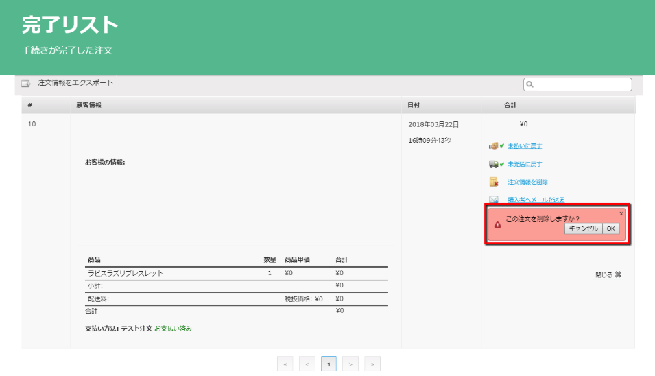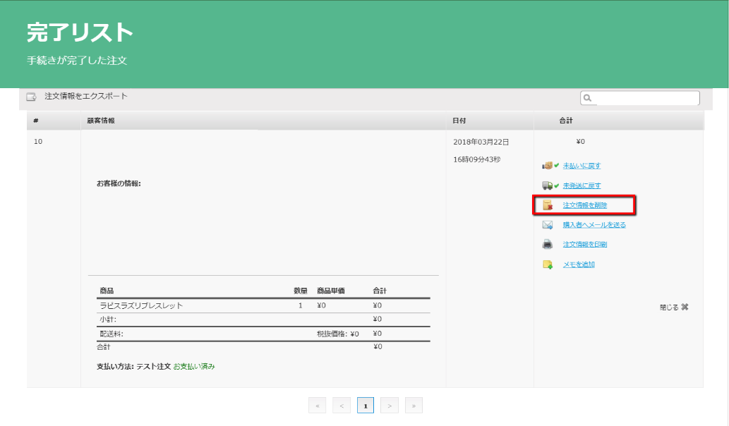 [編集画面]>[ショップ]>[完了リスト]から、すでに手続きが完了した注文を削除ができるようになりました。